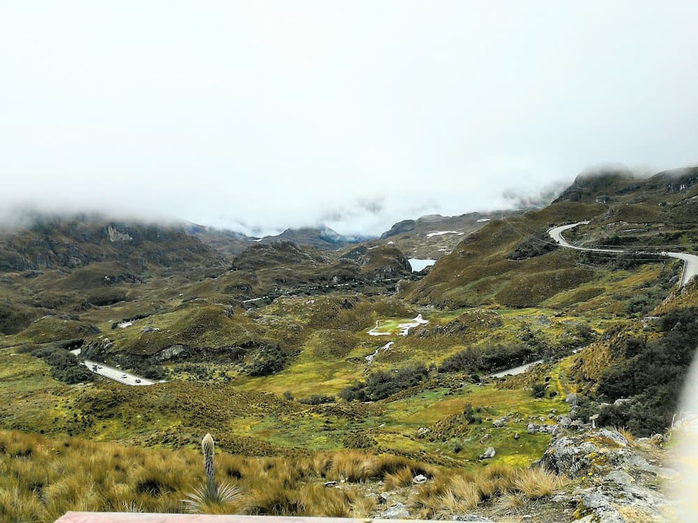 舗装された車道をトコトコ歩いていると、通り過ぎる車がクラクションを鳴らして手を振っていきます。エクアドル人はとってもフレンドリー。それにしても、獣臭い。
